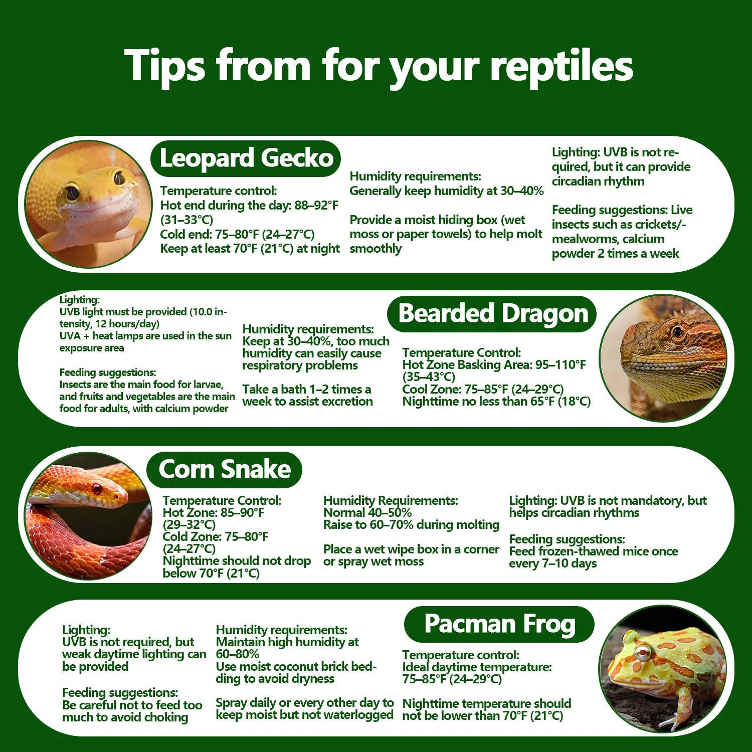 【Fast & Accurate Readings】 Equipped with a high-precision sensor, this thermometer/hygrometer gives fast and reliable readings—within ±1.8℉/±1℃ for temperature and ±5% RH for humidity. Perfect for reptile tanks, bearded dragons, ball pythons, geckos, and other pets, as well as bedrooms and small indoor spaces.